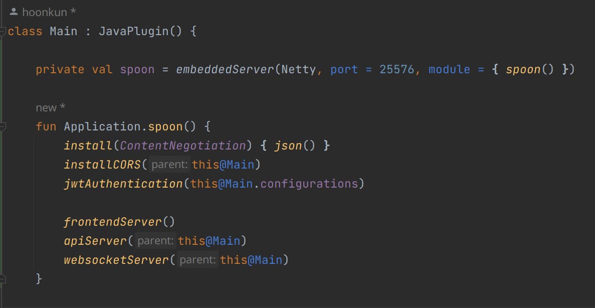마인크래프트 서버 플러그인 kotlin 으로 구현되는데, 그 플러그인에서 별도로 다른 종류의 서버를 열 수 있게 되어있다. 이를테면 웹서버라던지.
