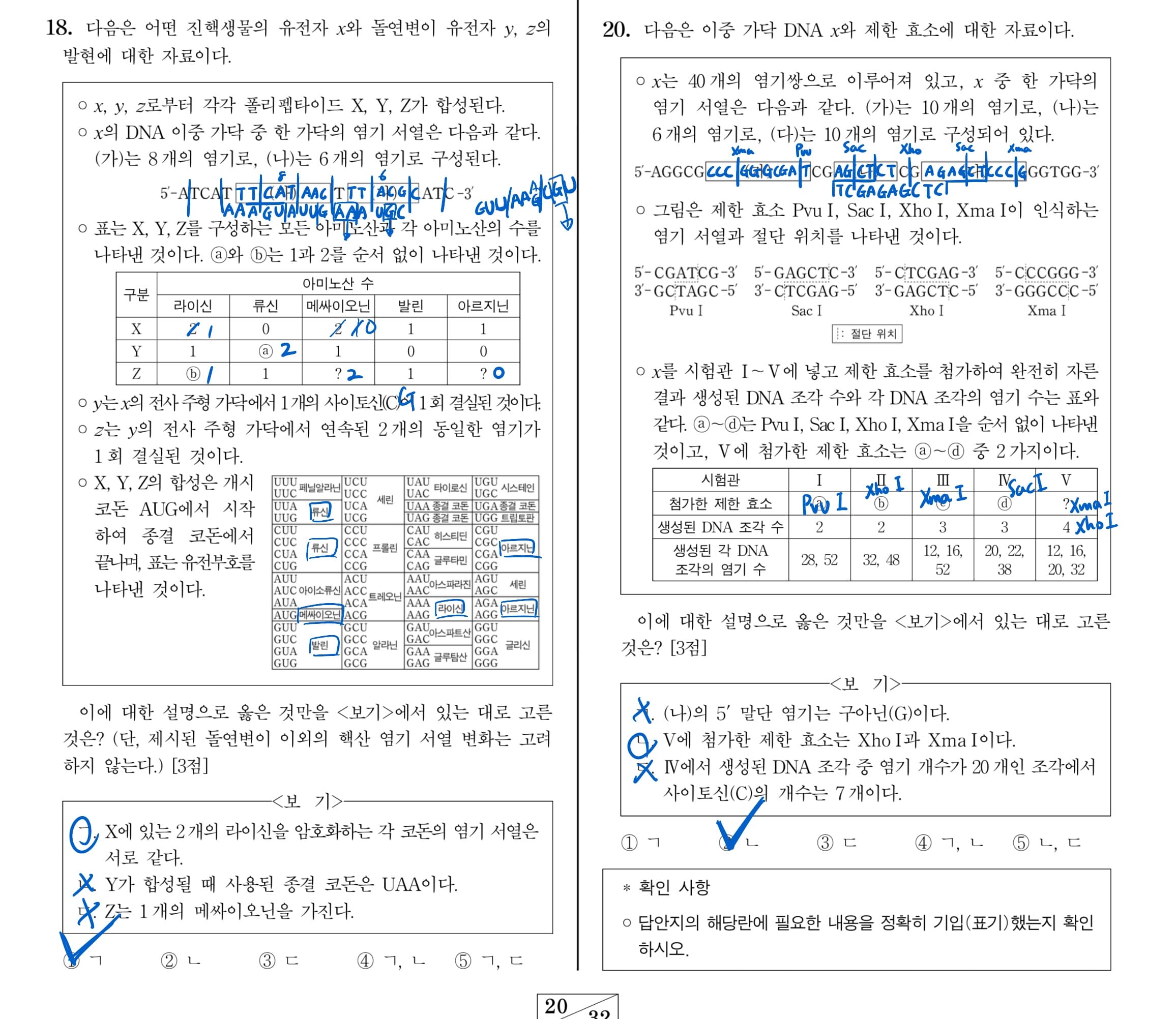 특히 이번 코돈은 진짜로 선을 넘은 것 같다. 이런 코돈 문제 지금까지 생물 풀면서 처음이다.